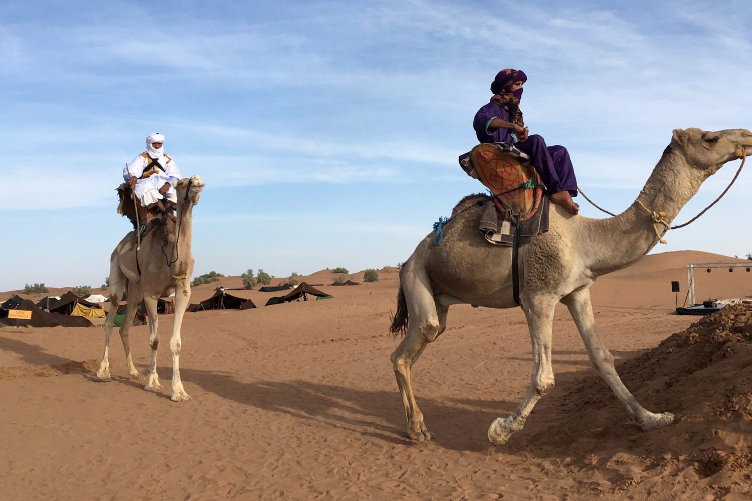 Rendez-vous à 15h00 à l’Hôtel Hamada du Draa à M’hamid. Départ de la Porte du Désert de M’hamid dans le vrai et immense désert à dos de chameaux traversant de petites dunes de sable. Cette visite à dos de chameau est une expérience digne d’une vie plus simple et plus calme et d’une expérience hors des sentiers battus. Un bon échantillon de nos activités écotouristiques. Vous aurez un avant-goût de la vie nomade en chevauchant des chameaux et en voyageant à travers le désert avec une autre facette de la vie. Nuit en demi-pension au paisible Standard Camp, Erg Lihoudi.